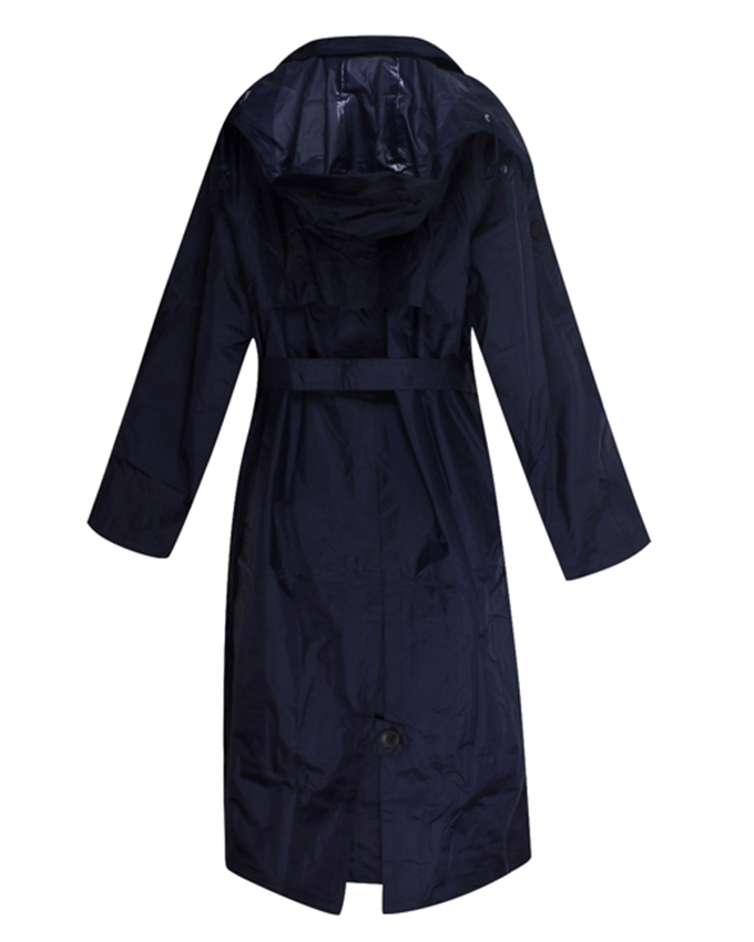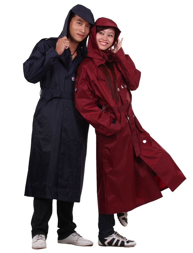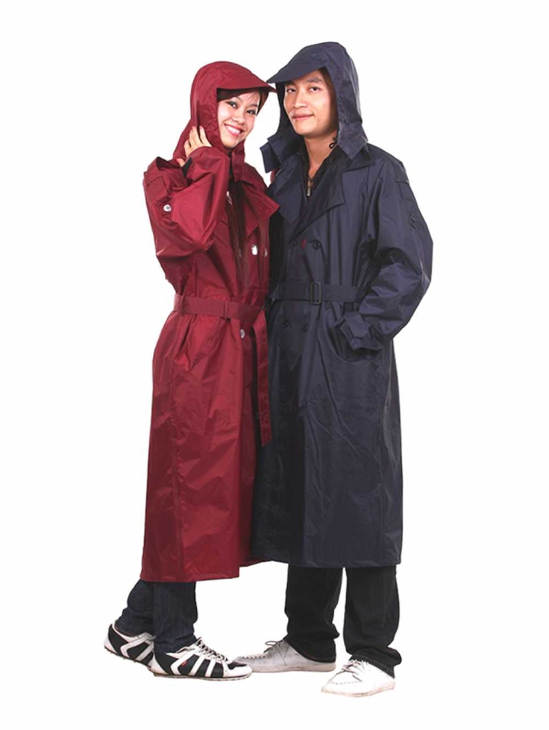 Bộ áo mưa măng tô thời trang với đai thắt duyên dáng rất được nữ giới ưa chuộng. Kiểu măng tô này người mặc trông rất sành điệu và thời trang dù đi trong mưa, áo mưa phủ dài hơn đầu gối nên mặc không bị ướt. Đồng thời với nón đội rời linh hoạt phù hợp với khi người đi xe máy.